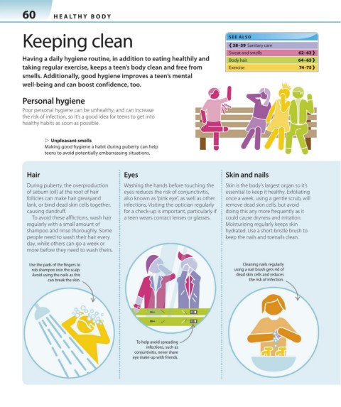 Having a daily hygiene routine, in addition to eating healthily and Body hair 64–65 ›