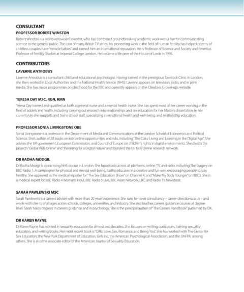 media. She has made programmes on childhood for the BBC and currently appears on the CBeebies Grown-ups website.