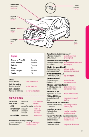 hire a/an ... louer … loo·way … Please check the oil/water.