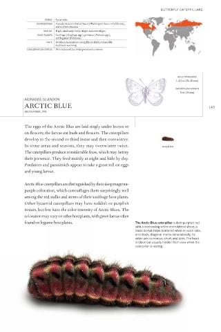 found on legume host plants. The Arctic Blue caterpillar is dark purplish red