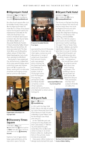 Stay p289. ∑ algonquinhotel.com ∑ bryantparkhotel.com