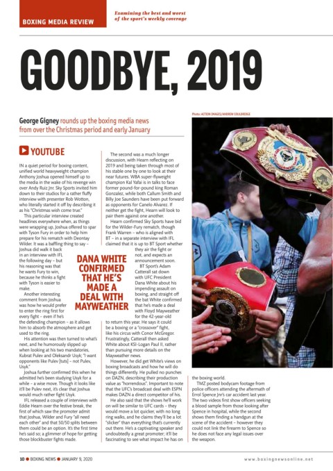 10 O BOXING NEWS O JANUARY 9, 2020 w w w . b o x i n g n e w s o n l i n e . n e t