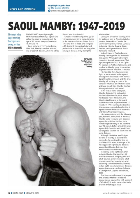 12 O BOXING NEWS O JANUARY 9, 2020 w w w . b o x i n g n e w s o n l i n e . n e t