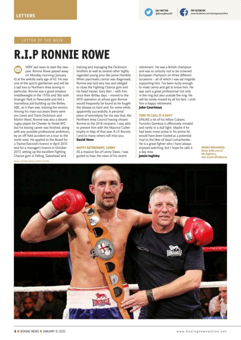 6 O BOXING NEWS O JANUARY 9, 2020 w w w . b o x i n g n e w s o n l i n e . n e t