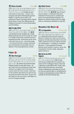 rooms don’t have air-con – which feels stingy Tables sit between olive trees and the colourful, PROVENCE & SOUTHEAST FRANCE 24 VAR DELIGHTS