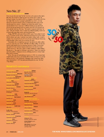 28 | FORBES ASIA APRIL 2019 FOR MORE: WWW.FORBES.COM/UNDER30/LIST/2019/ASIA