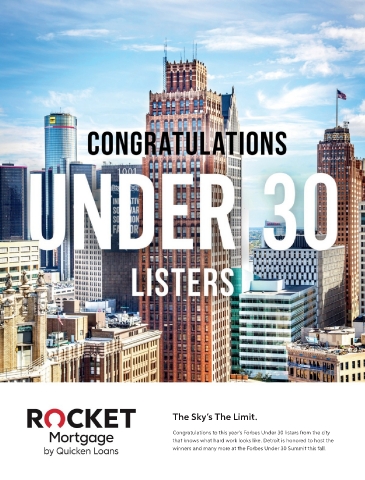 The Sky’s The Limit. Congratulations to this year’s Forbes Under 30 listers from the city that knows what hard work looks like. Detroit is honored to host the winners and many more at the Forbes Under 30 Summit this fall.