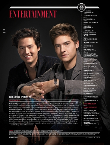 Cole and Dylan Sprouse were earning acting checks before they could walk. At 8 months old, the iden- COLE SPROUSE, 27