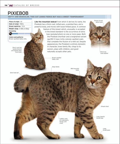Date of origin 1980s Pixiebob has a thick coat, tufted ears, a pointed face, and a