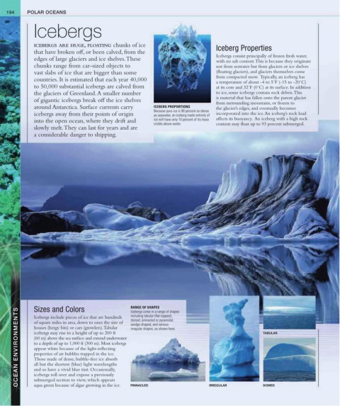 Icebergs include pieces of ice that are hundreds