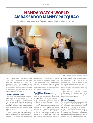 There are countless stories about Manny Pac- ing of HANDA Watch’s Tsukamidori store for such an endeavor,” he said.