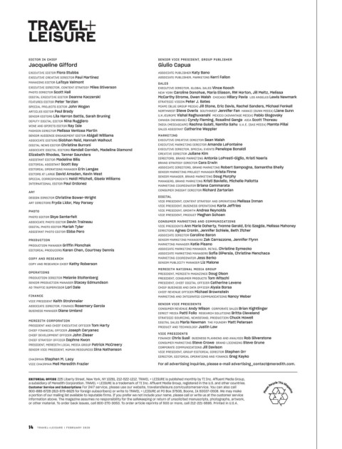 EDITORIAL OFFICE 225 Liberty Street, New York, NY 10281, 212-522-1212. TRAVEL + LEISURE is published monthly by TI Inc. Affluent Media Group,