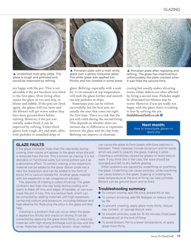 material can be added to the glaze. Boron oxide has a Other problems are caused by underfiring or overfiring