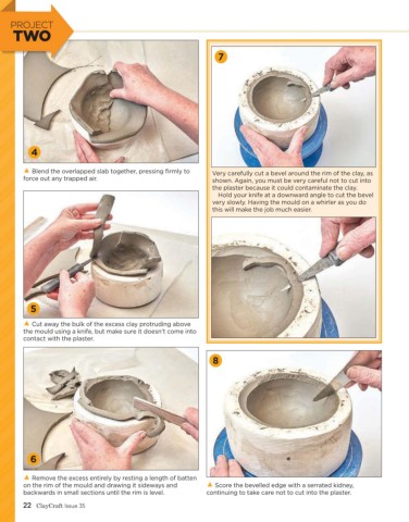 Blend the overlapped slab together, pressing fi rmly to Very carefully cut a bevel around the rim of the clay, as