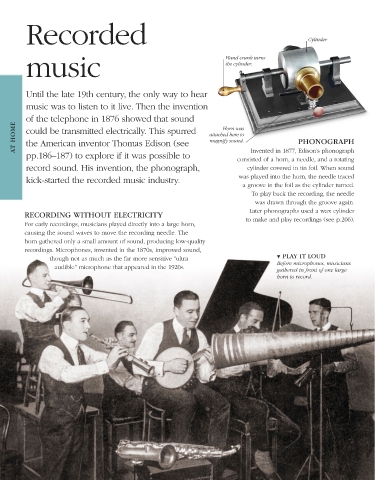 AT HOME could be transmitted electrically. This spurred attached here to PHONOGRAPH
