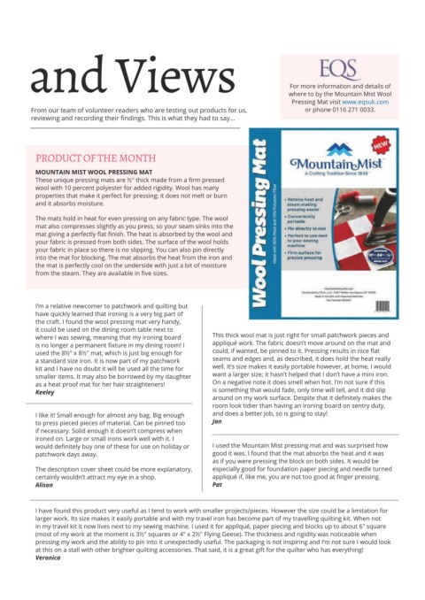 larger work. Its size makes it easily portable and with my travel iron has become part of my travelling quilting kit. When not