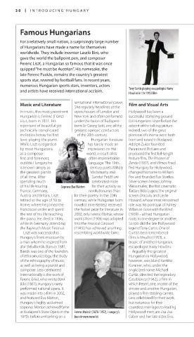 numerous Hungarian sports stars, inventors, actors Tony Curtis playing escapologist Harry acclaim, from architects Miklós goals against England at for her country, winning five