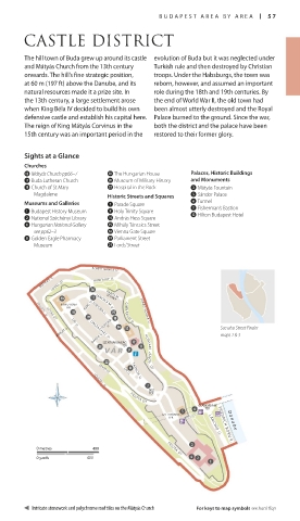 Intricate stonework and polychrome roof tiles on the Mátyás Church For keys to map symbols see back flap