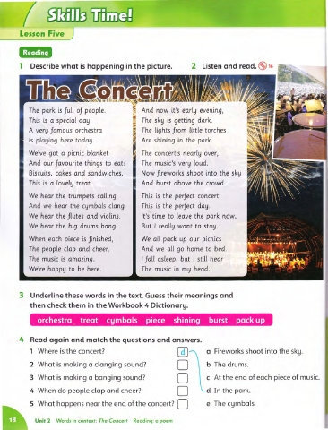 1 Where is the concert? [ill a Fireworks shoot into the sky.