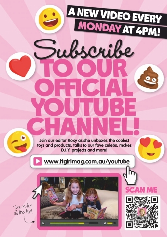 A NEW VIDEO EVERY MONDAY AT 4PM! Join our editor Roxy as she unboxes the coolest toys and products, talks to our fave celebs, makes D.I.Y. projects and more! www.it irlma .com.au/youtube SCANME Tune in for all the fun!