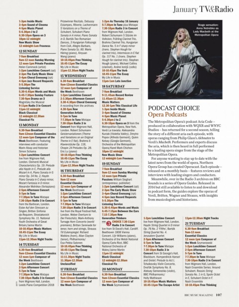 Classical Fix 7-7.30pm In Tune Mixtape 5-6.30pm J to Z The Metropolitan Opera’s podcast Aria Code –
