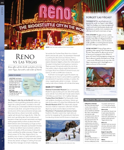 The “Biggest Little City in the World,” Reno was with galleries, boutiques, and bistros. Visitors can PRACTICAL INFORMATION
