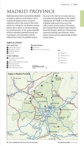 Snow-covered peaks of the Sierra Centro de Guadarrama For keys to symbols see back flap