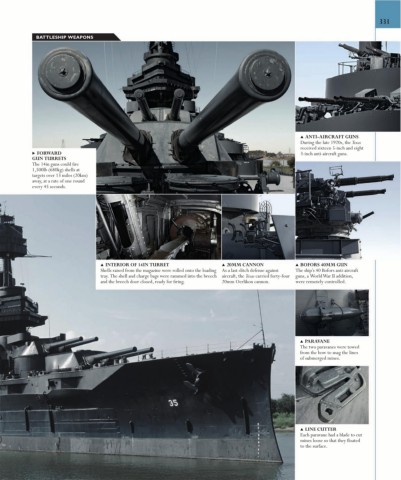 ▲ INTERIOR OF 14IN TURRET ▲ 20MM CANNON ▲ BOFORS 40MM GUN
