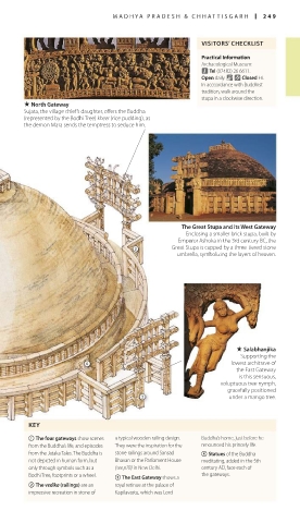 Bodhi Tree, footprints or a wheel. 3 The East Gateway shows a the gateways.