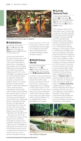 domain of devadasis (temple entertainment is staged. and pythons. Other reptiles