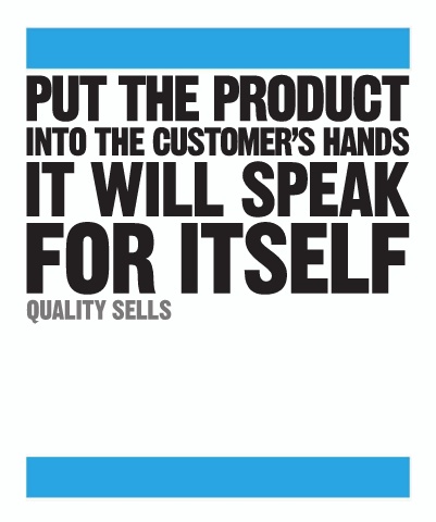 PUT THE PRODUCT INTO THE CUSTOMER’S HANDS IT WILL SPEAK FOR ITSELF QUALITY SELLS