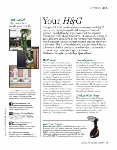 subscribe to our free e-newsletter at H&G@bauer-media.com.au or post to Your H&G, PO Box4088,