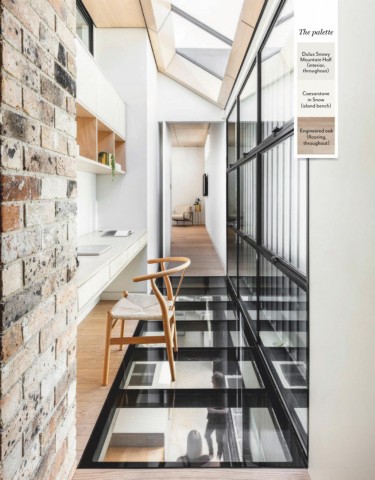The palette Dulux Snowy Mountain Half (interior, throughout) Caesarstone in Snow (island bench) Engineered oak (flooring, throughout)