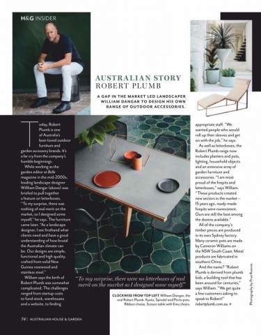 Robert Plumb was somewhat merit on the market so I designed some myself.” been around for centuries,” Photography by Prue Ruscoe.