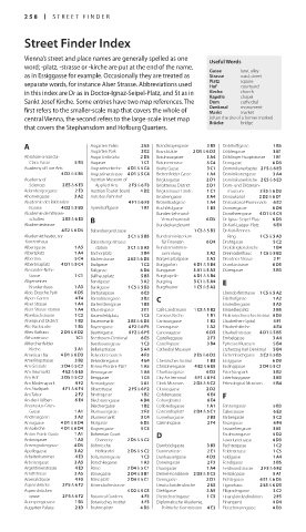 central Vienna, the second refers to the large-scale inset map (often the site of a former market) Franz-Josefs-Kai 2 D4 & 6 D1 Gutenberggasse 3 B1 Stallburg Kärntner Ring 4 D2 & 6 D5