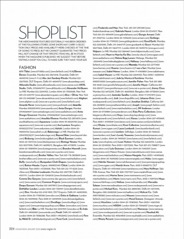 958325702 (www.ashish.co.uk) Balenciaga: Le Mill, Mumbai 022- (www.net-a-porter.com) Lemlem: Selfridges, London 0044-20-7606222