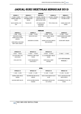 JADUAL GURU BERTUGAS MINGGUAN 2019