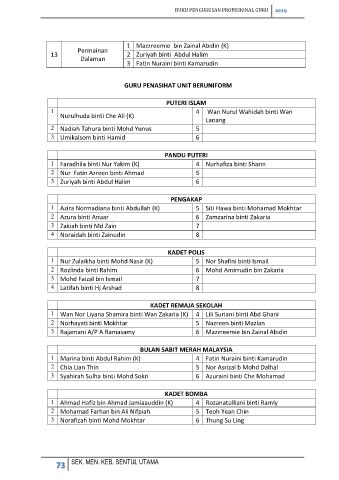 1 Marina binti Abdul Rahim (K) 4 Fatin Nuraini binti Kamarudin