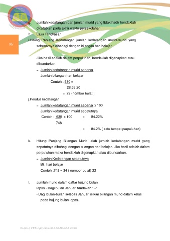 g. Jumlah kedatangan dan jumlah murid yang tidak hadir hendaklah