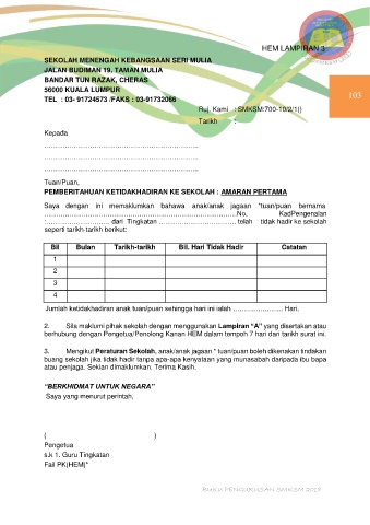 Jumlah ketidakhadiran anak tuan/puan sehingga hari ini ialah …………………. Hari.