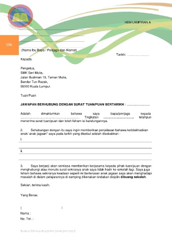 menghubungi atau menulis surat sekiranya anak saya tidak hadir ke sekolah lagi. Saya juga
