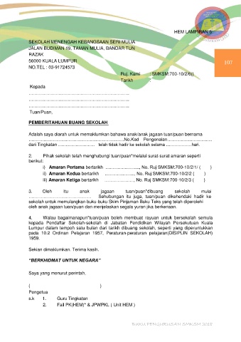 2. Pihak sekolah telah menghubungi tuan/puan*melalui surat-surat amaran seperti