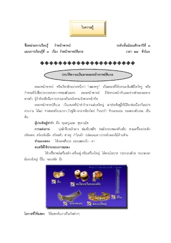 ชื่อหน่วยการเรียนรู้ รำหน้าพาทย์ ระดับชั้นมัธยมศึกษาปีที่ ๓