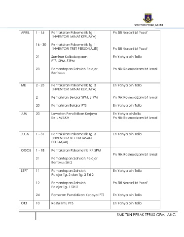 APRIL 1 - 15 Pentaksiran Psikometrik Tg. 1 Pn Siti Noraini bt Yusof