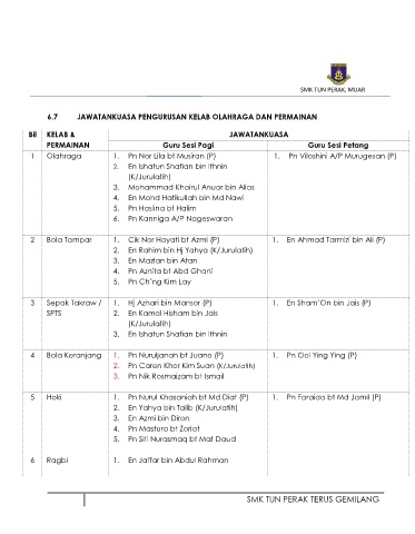 6.7 JAWATANKUASA PENGURUSAN KELAB OLAHRAGA DAN PERMAINAN