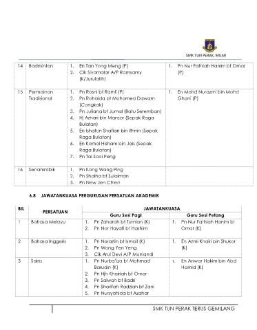 14 Badminton 1. En Tan Yong Meng (P) 1. Pn Nur Fathiah Hanim bt Omar
