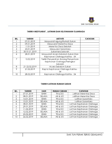 TARIKH MESYUARAT , LATIHAN DAN KEJOHANAN OLAHRAGA