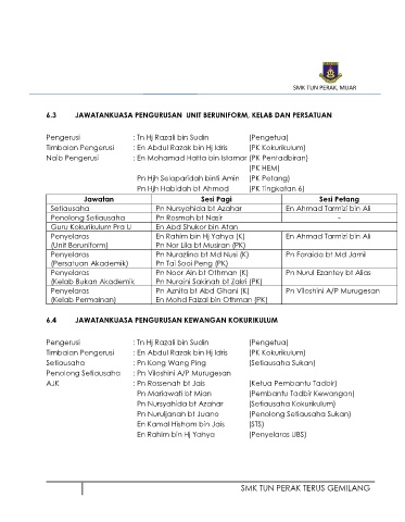 6.3 JAWATANKUASA PENGURUSAN UNIT BERUNIFORM, KELAB DAN PERSATUAN