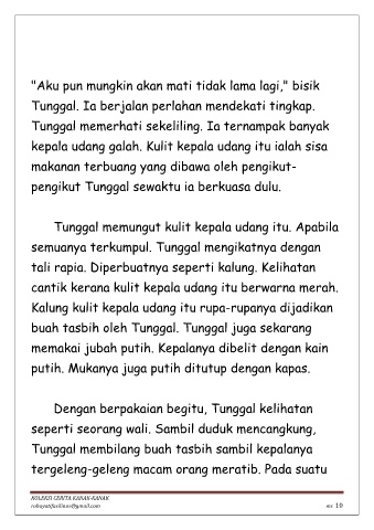 Tunggal memungut kulit kepala udang itu. Apabila