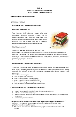A. PENGERTIAN TEKS LAPORAN HASIL OBSERVASI